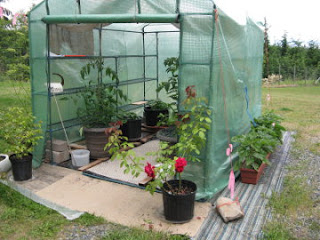 The tomatoes have been staked for support. These plants are my 'Outdoor Salsa', now being sold on Denman through Annie Siegel as 'Sally's Salsa'. For all tomatoes, I prune leaves from the bottom so none touch the soil. Also prune out all suckers, (except one) that start growing from the leaf attachment on the stem. I allow the main stem and one off shoot, both are staked separately. With this particular variety, once the fruit is pollinated, I leave only 2-3 fruit per set. My main goal with these is seed saving and keeping this variety of very large fruit with few seeds. I am hoping to break my previous record weight of 1lb. 10-1/4oz for one tomato, from two years ago!